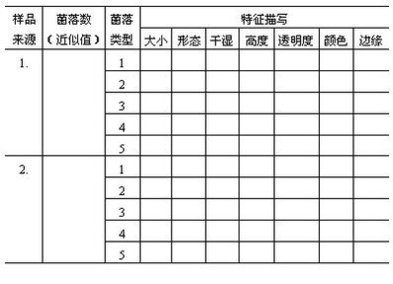 ①大小大、中、小、針尖狀??上葘⒄麄€平板上的菌落粗略觀察一下,再決定大、中、小的標準,或由教師指出一個大小范圍。