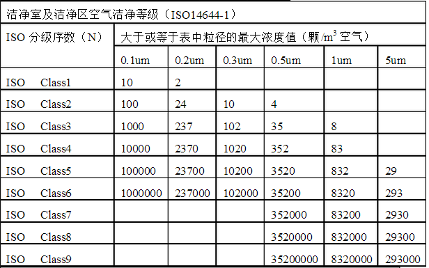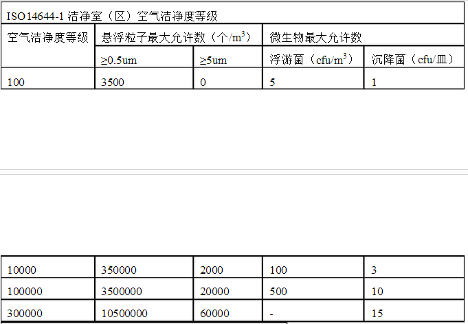 潔凈室檢測應(yīng)參考的潔凈等級: 空氣潔凈度等級參考: